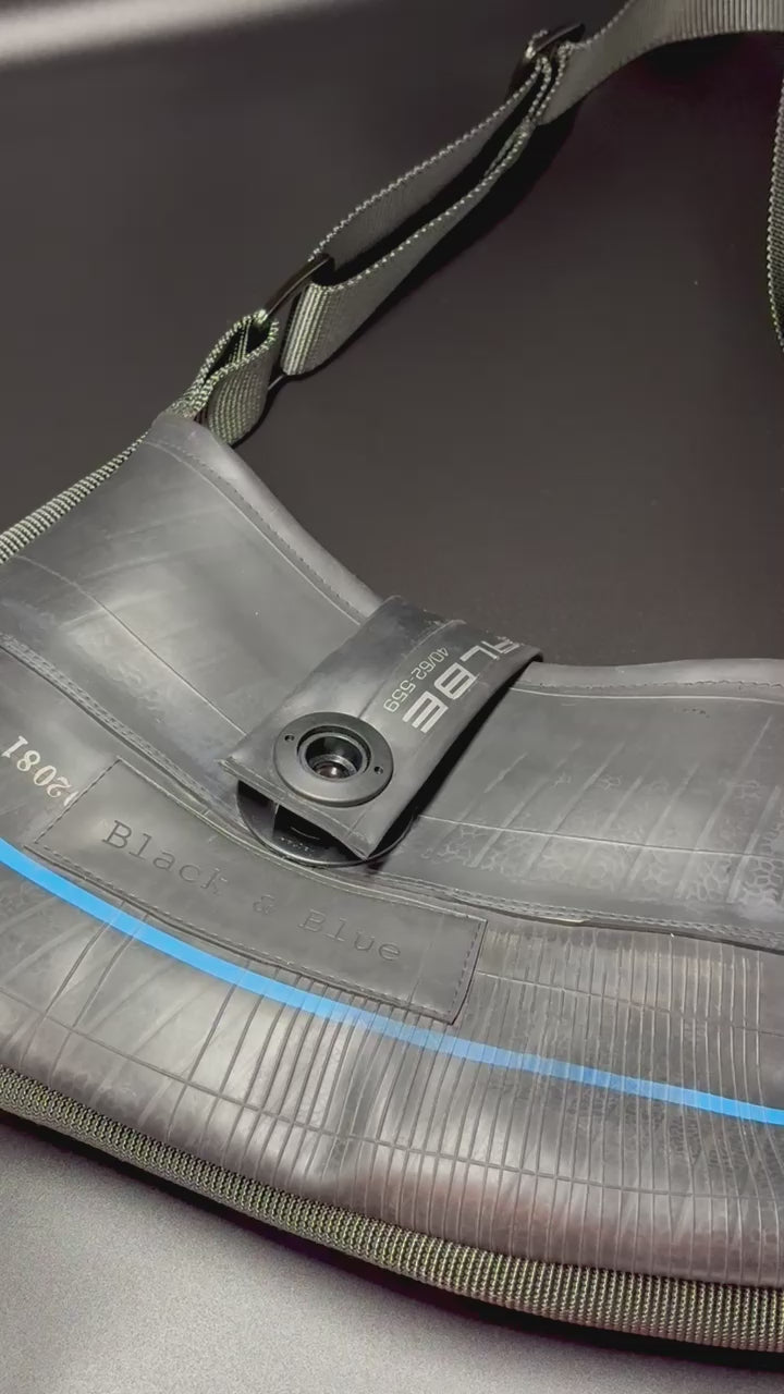 Crafted from upcycled bicycle inner tubes, this shoulder bag is a statement of circular design and urban functionality. Each piece carries the natural marks, lines, and textures of its previous life, making every bag truly one of a kind.